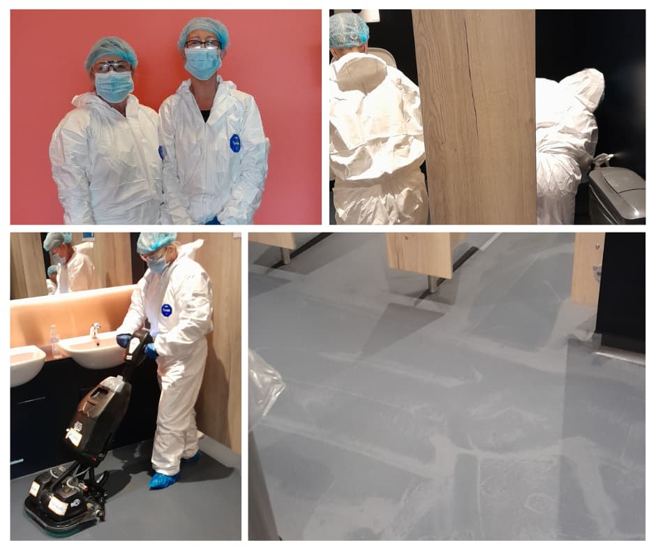 Using Prochem Stain Pro, a specialist enzymatic cleaning agent designed to dissolve bio-material on contact, our team carried out a comprehensive clean across all surfaces – floors, walls, doors, toilet basins, hand basins, and taps. The Numatic floor scrubber/dryer was deployed to ensure all floor surfaces were thoroughly cleaned, sanitised, and left completely dry and safe.